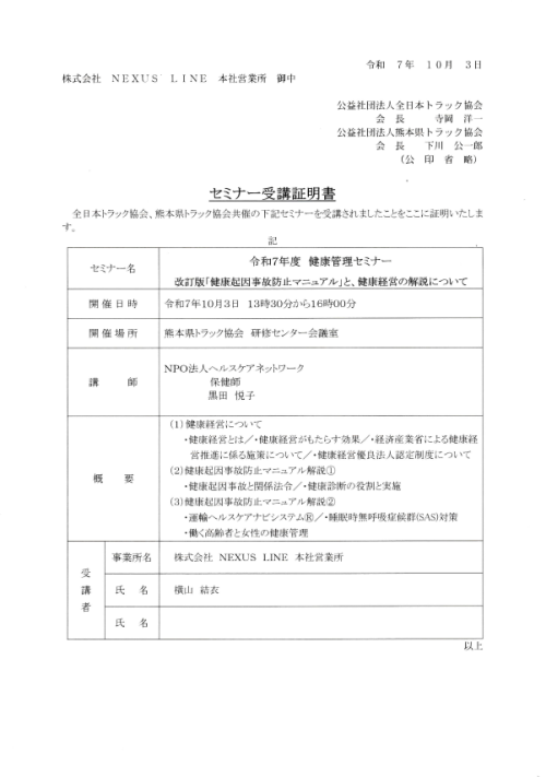 最後には、セミナー受講証明書を頂きました(*^▽^*)