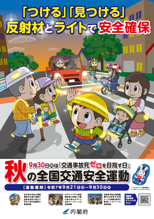 令和7年9月21日(日)~30日(火)の10日間において、秋の交通安全運動が実施されています。